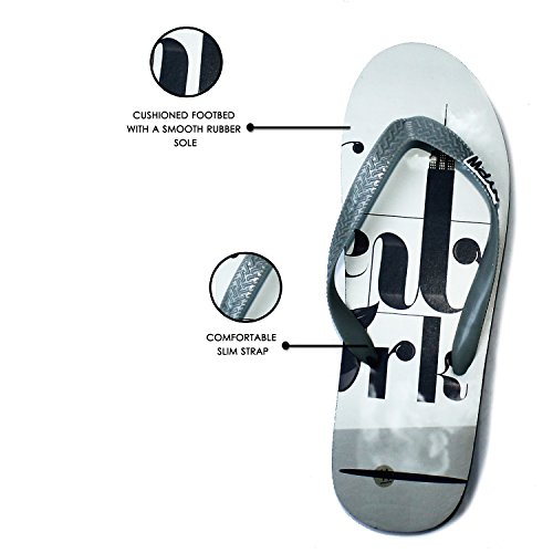 (P W New York)/Women's/Sandals/DIRECT FROM USA/P W New York Women's Casual Grey Rubber Flip Flops Slippers, Text Print