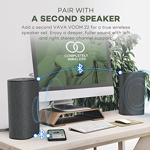 Pair with a second speaker: Add a second VAVA VOOM 22 that connects to each other via Bluetooth for a true wireless speaker set that needs no cables; supports left and right stereo channels for deeper, fuller sound