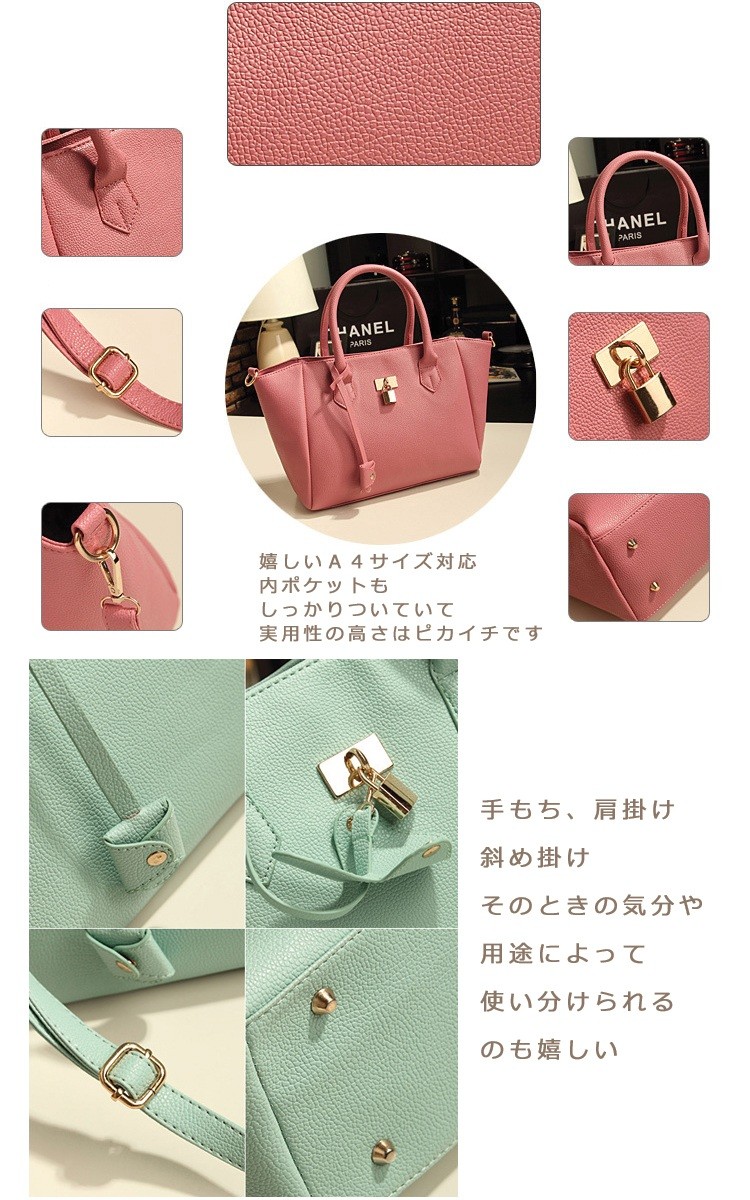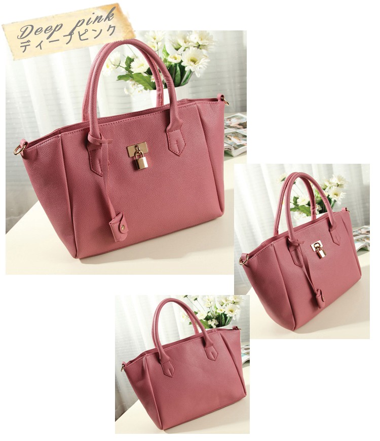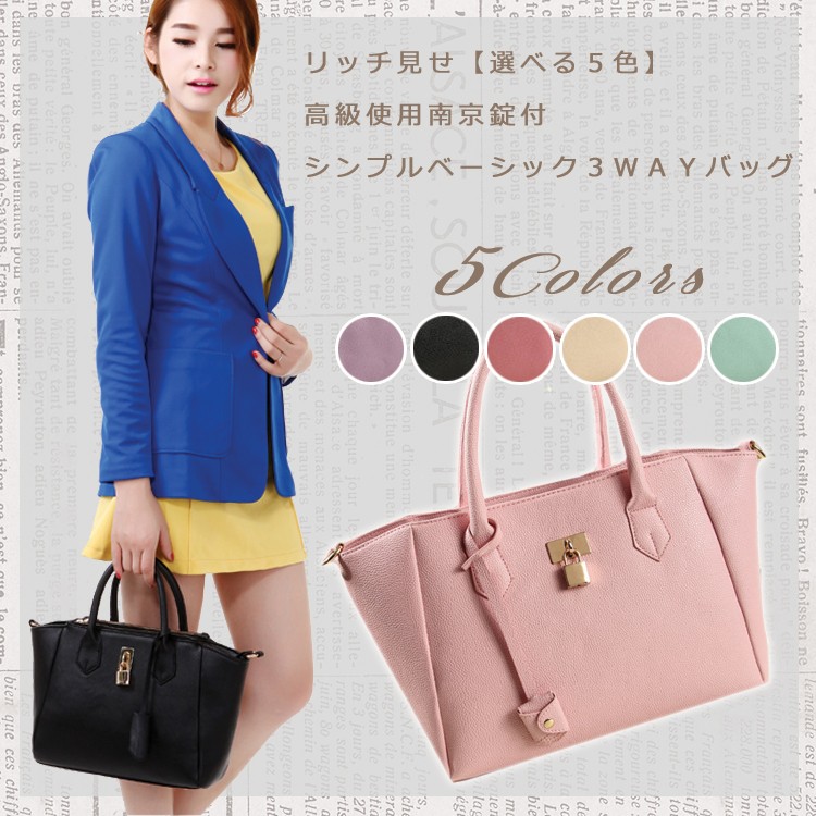 『決算セール在庫限り』『送料無料』リッチ見せ【選べる5色】高級使用南京錠付シンプルベーシック2WAYバッグ☆お仕事にも☆ショルダー付2WAY☆シンプルカラーブガッティバッグ/レディース『セール品のため返品交換不可』