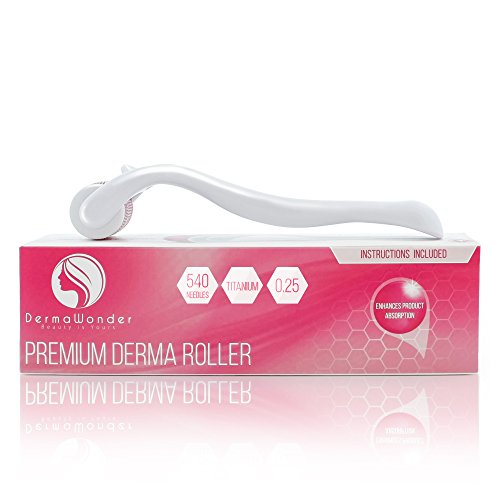 DermaWonder Micro Derma Roller. Made out of 540 ultra-sharp titanium micro needles, each with a 0.25 mm length, the