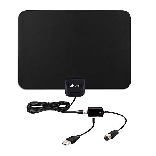 TV Antenna, Ahere Amplified HDTV Indoor Digital Antenna 50 Miles Range with Detachable Amplifier USB Power SupplySignal Booster and 10FT Coaxial Cable,Black