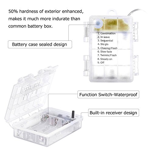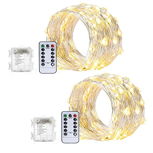 ZJMZZM 2 Sets Battery Operated Waterproof Fairy String Lights 16.4Ft 50 LEDS, Silver Wire 8 Modes Remote Control for Bedroom, Wedding, Thanksgiving and Christmas Décor (Warm White)