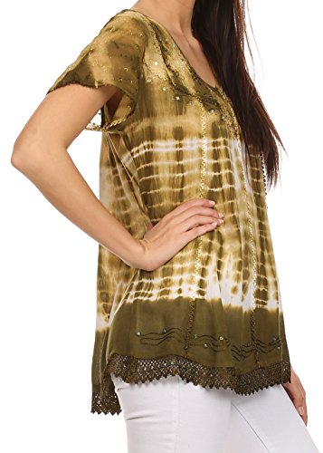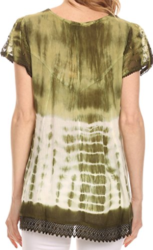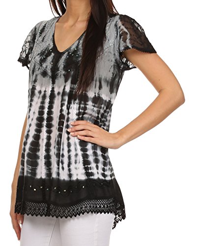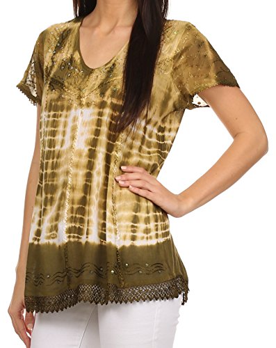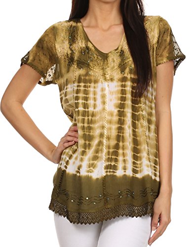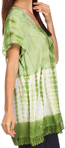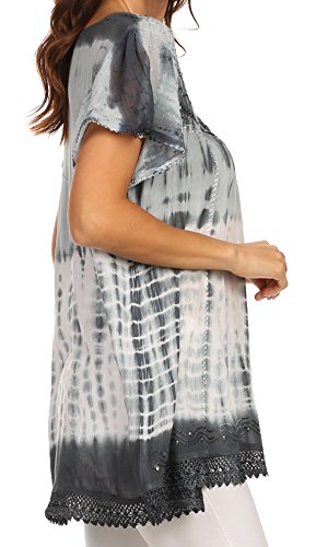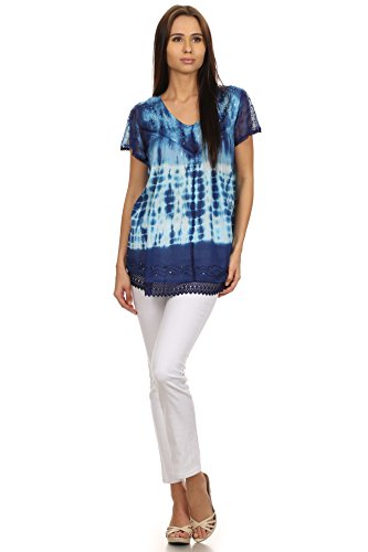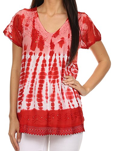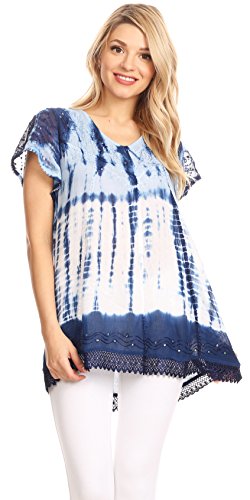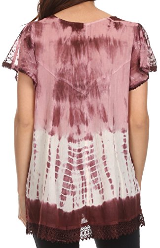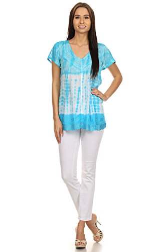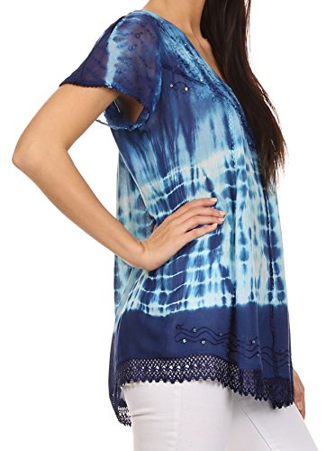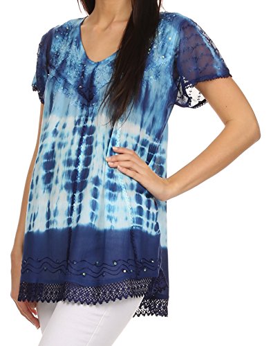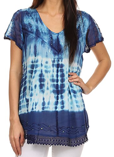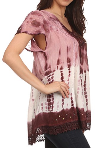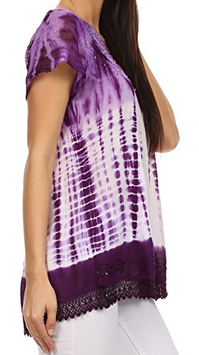 | Sakkas Violet Embroidery Tie Dye Sequin Accents Blouse / Top |