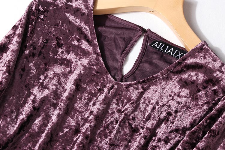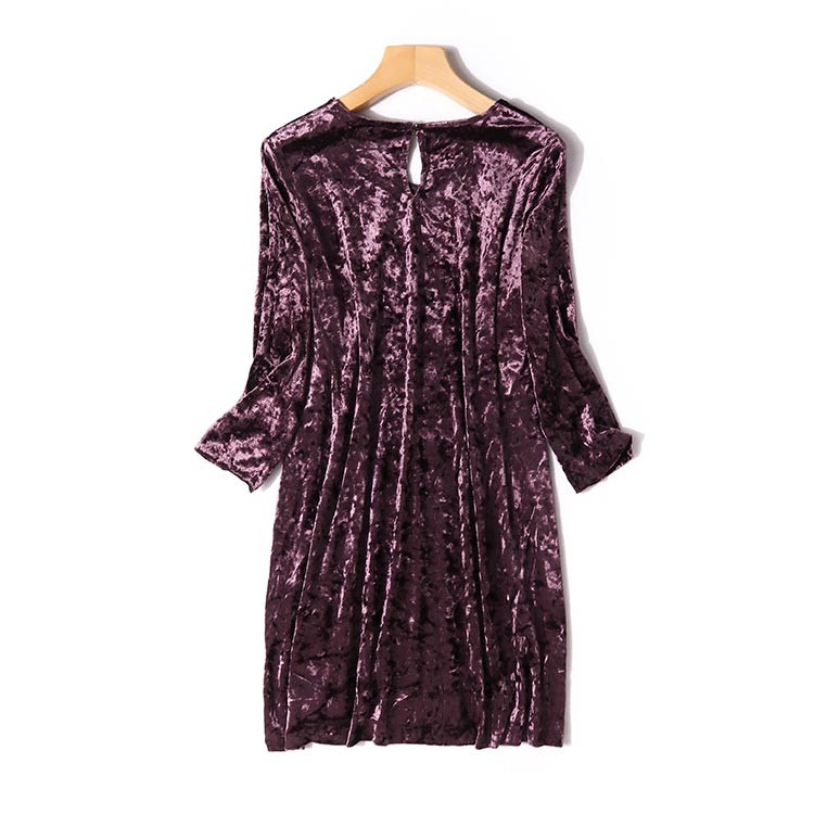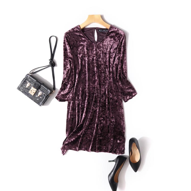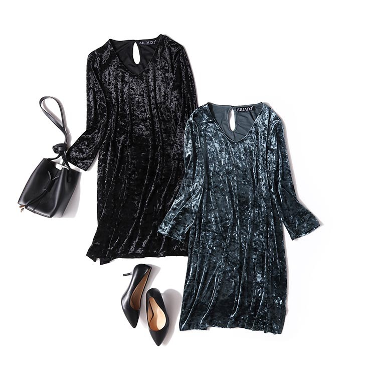 Vネック・ベルベット素材・サイドスリット入りのボックスラインワンピース♪