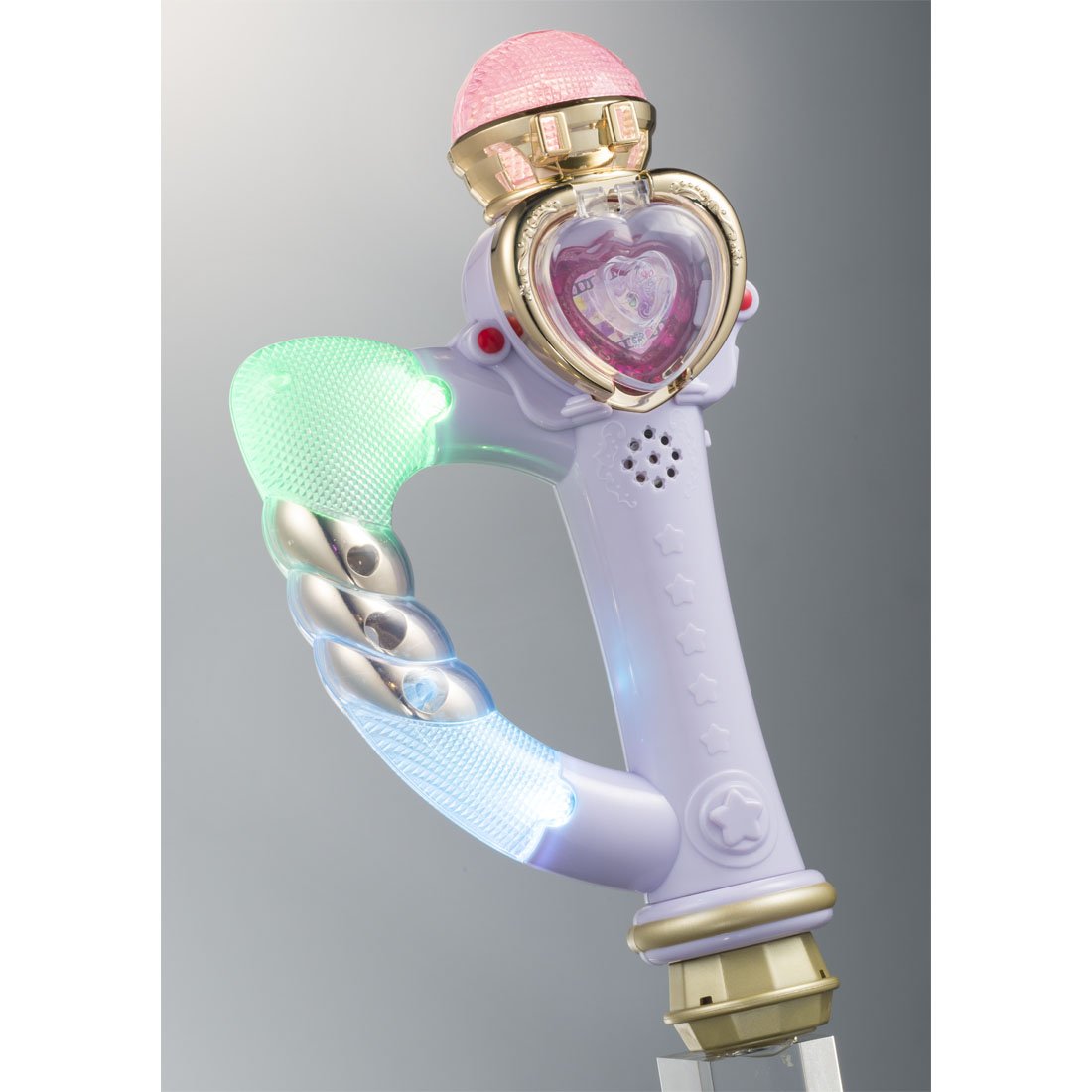 When attaching or separately sold "Jewel" is set in the microphone, three places of the microphone body will shine with seven color LEDs and play idol voices and music etc.