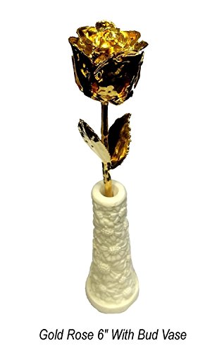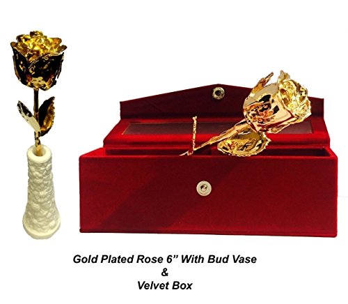 Carts Style 24k Gold Dipped 6' Real Rose With Designer Bud Vase WITH GIFT BOX - BEST GIFT FOR BIRTHDAY, ANNIVERSARY, WEDDING, CHRISTMAS, FRIENDS, NEW YEAR, SISTER AND YOUR LOVED ONES