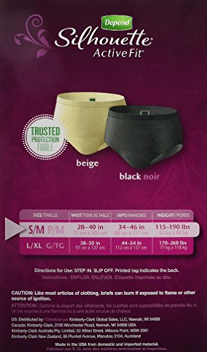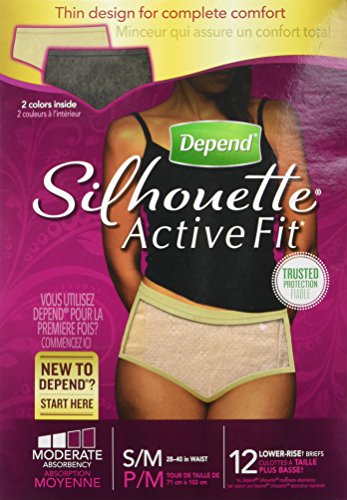 -. Binding : Health and Beauty -. Brand : Depend -. Feature : Depend Silhouette Active Fit Moderate Absorbency briefs feature a thin design for complete comfort / Depend Silhouette Active Fit briefs are smooth under clothes for a discreet fit / Depend Silhouette Active Fit briefs have a feminine elastic waistband and all-around leg elastics for closefitting protection to prevent leaks / Depend Silhouette Active Fit Moderate Absorbency briefs come in black and beige colors to stylishly complement your wardrobe -. Label : Depend -. Manufacturer : Depend -. MPN : KB 42660 -. PartNumber : KB 42660 -. ProductGroup : Health and Beauty -. ProductTypeName : HEALTH_PERSONAL_CARE -. Publisher : Depend -. Studio : Depend -. Title : Depend Underwear Silhouette Active Fit, Beige & Black, Small/Medium, 12 Count