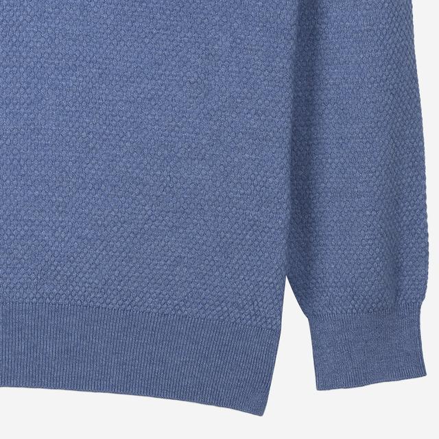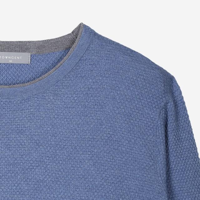 입체적인 엠보 패턴 바탕에 네크라인에 다른 컬러를 배색하여 포인트를 준 니트입니다.