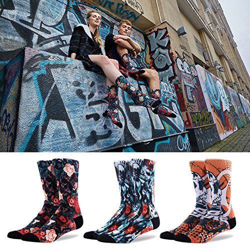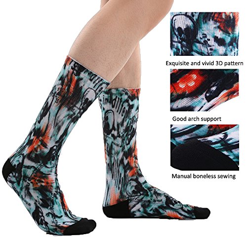 -. Title : Novelty Funky Coolmax Socks, Digital P.R.Inting contrast color Crazy Patterned Mid Calf Crew Socks 3/1 Pairs