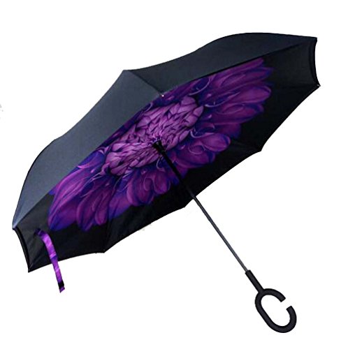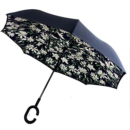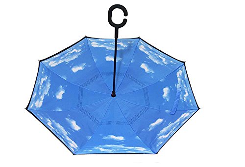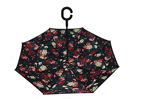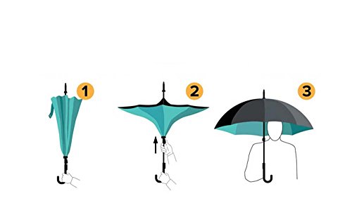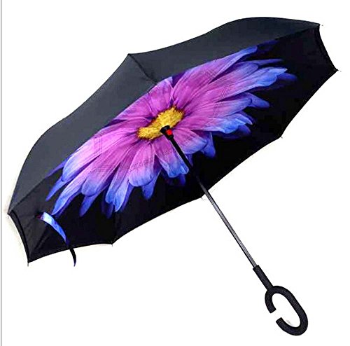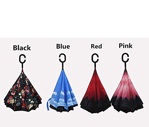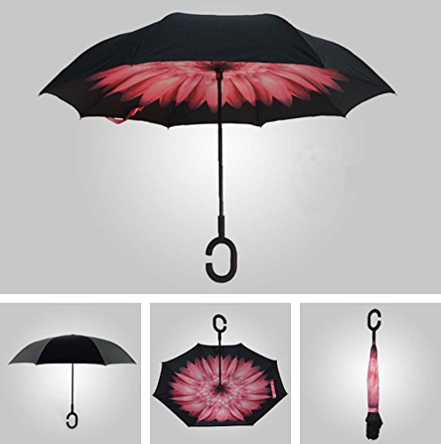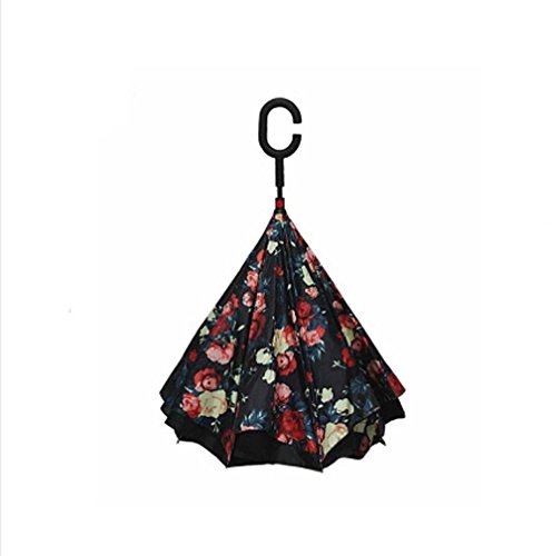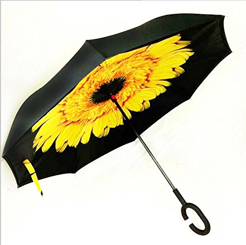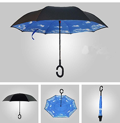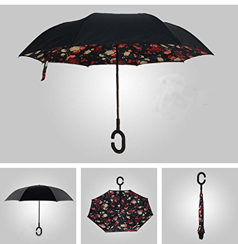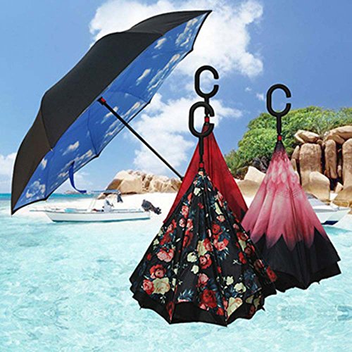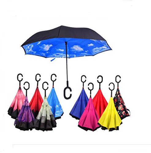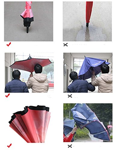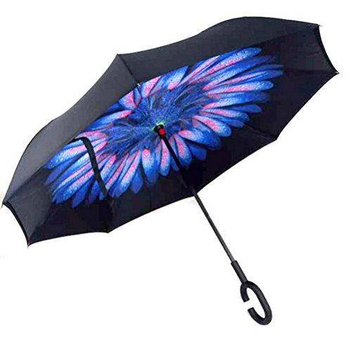 | Bbshop Windproof Reverse Folding Double Layer Inverted Umbrella Self Stand Inside Out Rain Prot... |