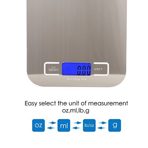 - High Precision Sensor - accurate weight all the time; 5kg/11lb capacity, 0.01oz/1g division, Perfect for baking, cooking, postage and jewelry