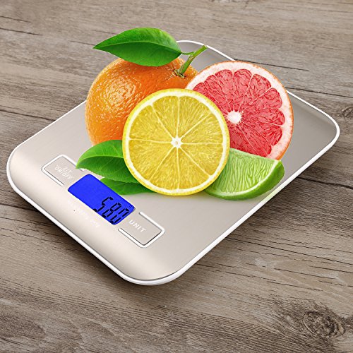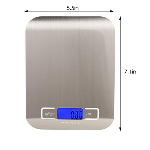 FunCase Digital Kitchen Scale Multifunction Accurate Food Scale 11lb 5kg Stainless Steel Platform with LCD Display for Kitchen Cooking Baking, Silver