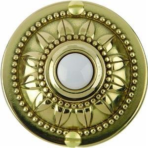 Wired push button with medalion design and lighted white push button. Solid brass escutcheon. Flush mounted. 8 to 24V.