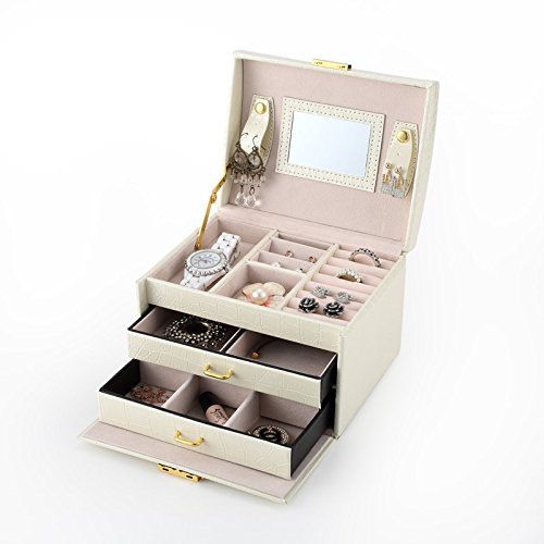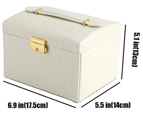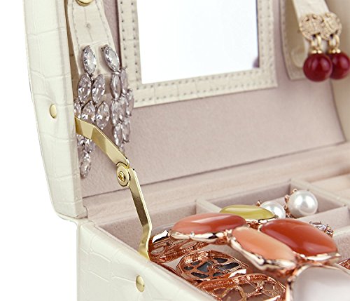 Beautiful stylish design for your accessories The jewelry box comes with a lock and key, keep your private treasure from from scratches and damage. The mirror on the top lid is large enough for your makeup.