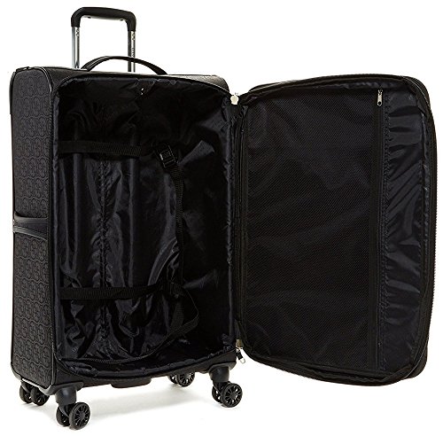 Studio : Guess Luggage Publisher : Guess Luggage Binding : Apparel Product Description GUESS fashion travel - fenner collection 24" spinner upright. Features of this black bag include 8-wheel design, light weight body construction, highly impact resistant, multi stop aluminum trolley system, top and side carry handles, interior organization, GUESS jewelry-crafted hardware, fully lined with GUESS logo pattern, GUESS ID tag, and jewelry inspired zip pullers. Designed in los angeles, 5-year limited warranty. 0