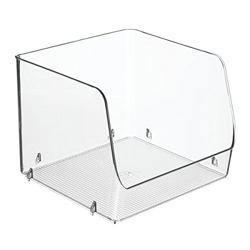 mDesign Stacking Organizer Bins for Kitchen, Pantry - Pack of 4, Large, Clear