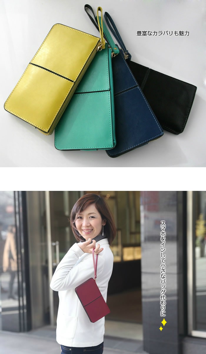スッキリ薄いスマホも入る 本革長財布