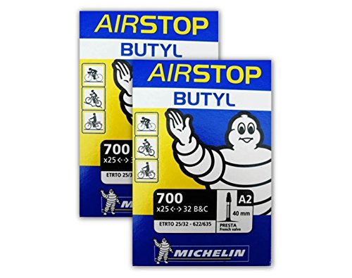 Product DescriptionMichelin Airstop Butyl 700x25-32C Road Bicycle Tube. 40mm valve length. 0.9mm thick butyl tube for increased puncture resistance. Fits 700c bicycle tires from 25mm to 32mm in width.0