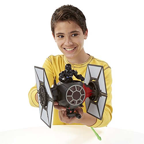 -. Binding : Toy -. Brand : Star Wars -. Color : Black -. EAN : 0630509345083 -. Feature : First Order Special Forces TIE Fighter converts / Vehicle launches projectile / Includes First Order TIE Fighter Pilot and 1 accessory / Includes vehicles, figure, accessory, projectile, and instructions. -. Genre : strategy -. IsAdultProduct : 0 -. ItemPartNumber : B3703AS0 -. Label : Star Wars -. Manufacturer : Star Wars -. Model : B3703AS0 -. MPN : B3703AS0 -. PackageQuantity : 1 -. PartNumber : B3703AS0 -. ProductGroup : Toy -. ProductTypeName : TOYS_AND_GAMES -. Publisher : Star Wars -. ReleaseDate : 2015-09-03 -. Size : Standard -. Studio : Star Wars -. Title : Star Wars Hero Mashers Episode VII TIE Fighter and TIE Fighter Pilot -. UPC : 630509345083 -. Warranty : No Warranty