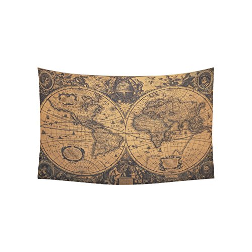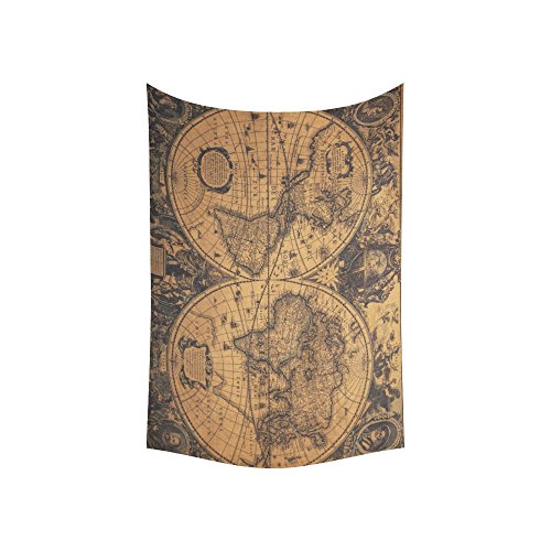 D-Story Custom Wall Tapestry Vintage World Map Cotton Linen Tapestry Wall Hanging 40x 60