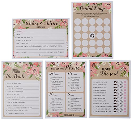 - 5 GAMES INCLUDED: "How Well do You Know the Bride?"; "What is on Your Phone?"; Bridal Shower Bingo; Marriage Advice and Well Wishes; and "He Said She Said".