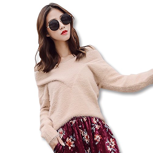 -. Title : LOVETIARA ニット レディース 長袖 Vネック 《秋冬 ゆるめ (アンゴラ セーター シャギー トップス オフショルダー 【3カラー】