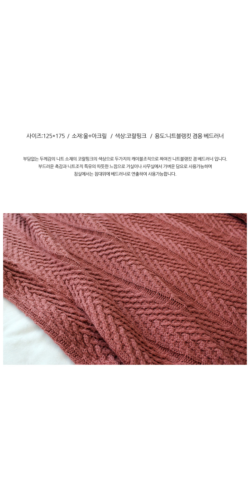 쇼파위에서 가벼운 담요로 사용가능하며 또는 침대 위 베드러너로 연출하여 사용가능합니다.