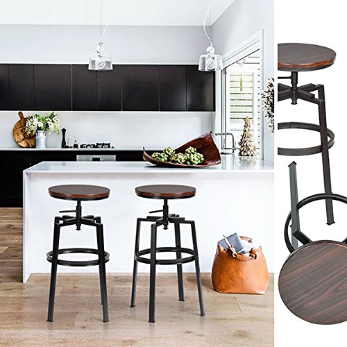 -. Color : Brown -. EAN : 0736313995480 -. Feature : Color: Black Frame and Walnut Seat / Materials: Wood Veneer, Metal, MDF / Adjustable seat from 26.5 to 29.5 inches to meet your needs / Dimensions: 26.5 to 29.5 inches high x 18 inches long x 18 inches deep / Assembly required -. Label : eHomeProducts -. Manufacturer : eHomeProducts -. Model : 6076 -. ProductGroup : Furniture -. ProductTypeName : HOME_FURNITURE_AND_DECOR -. Publisher : eHomeProducts -. Studio : eHomeProducts -. Title : SET of 2 - Black and Walnut Finish Industrial Style Adjustable Metal Swivel Counter Height Bar Stools -. UPC : 736313995480