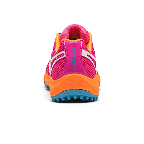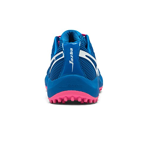 Built for the player that places the highest priority on agility and protection, this premium offering features a full 3D LayerCraft Upper technology, which provides agile movement with greater protection. This exciting innovation brings unmatched breathability and flexibility that won't break down over time along with exceptional energy return with every step. The upper is also inter-lined with waterproof membrane to provide you comfortable run on wet astroturfs. Jazba's Duraturf outsole profile incorporates 360 degree swift flow tread pattern which offers good playability on any turf, wet and dry surface. 0