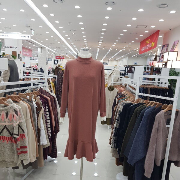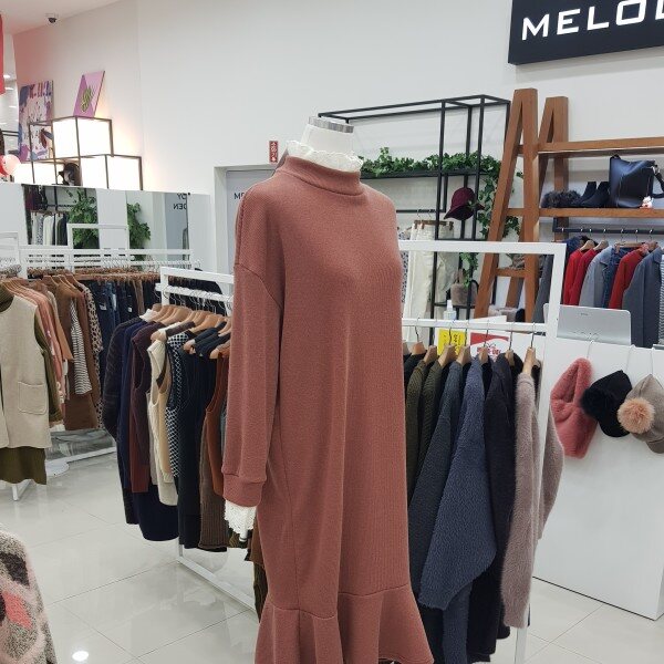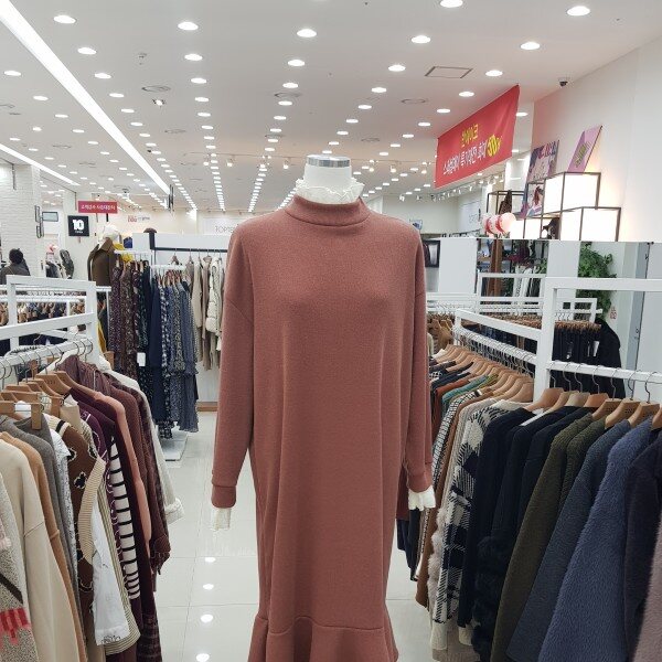 목선과 소매선 레이스 포인트 루즈한 원피스