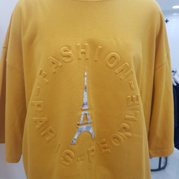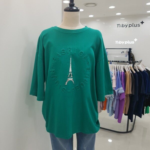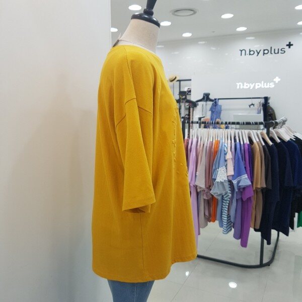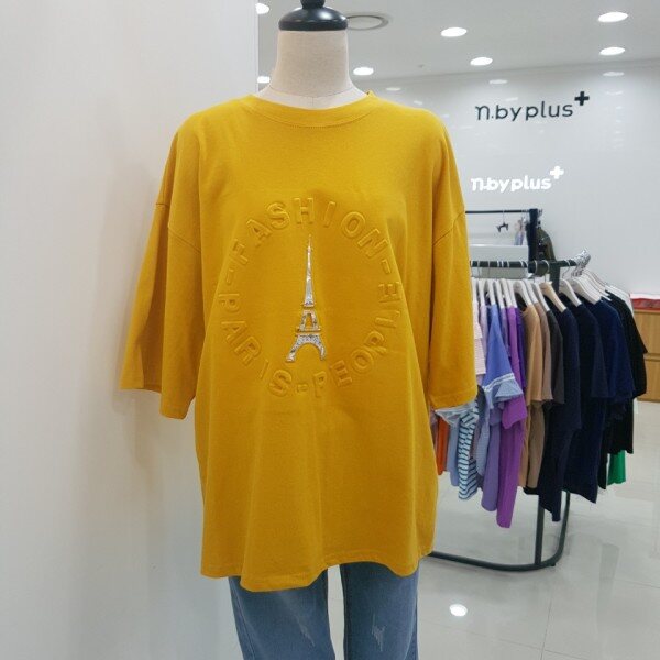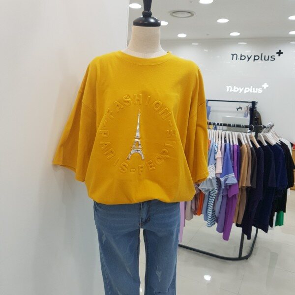 전면에 영문 음각 프린팅이 들어간 루즈핏 반팔 티셔츠입니다.