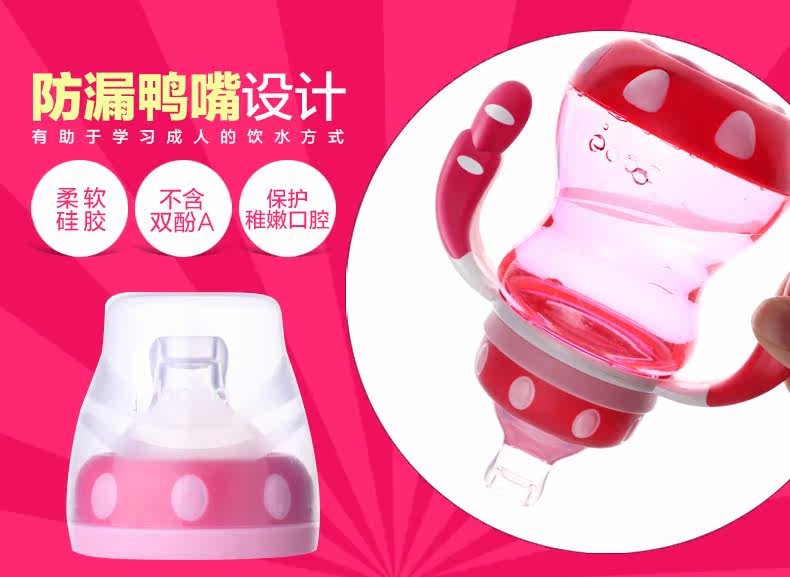 Leak proof design of duck food grade material flow control soft mouth and hands grip
