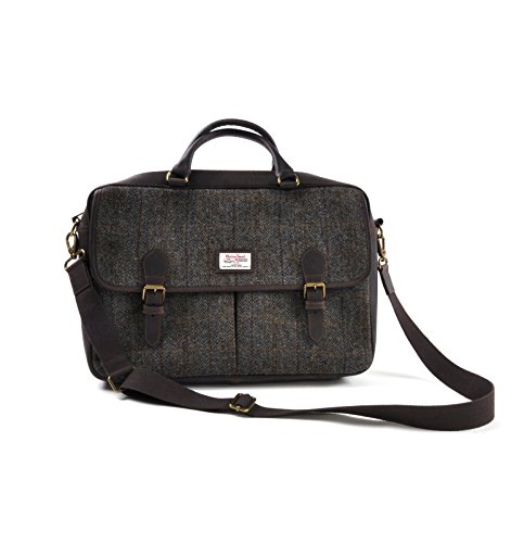 Studio : Harris Tweed Publisher : Harris Tweed Binding : Kitchen Product Description Harris Tweed Brown Leather Briefcase Make a style statement with a genuine Harris tweed large shoulder bag / briefcase This classic large bag features real Harris Tweed as used by the world's top designers with real leather, canvas and metal fittings Extra large main compartment with separate zipped inner pocket fits A4 folders and even large laptops up to 17.3" With separate zipped back compartment and 2 smaller flap top front compartments this bag offers flexible storage for travel or work With top grab handles and removable extending shoulder strap Bag measures 44cm wide x 30cm tall x 10cm deep (17" x 12" x 4") 0