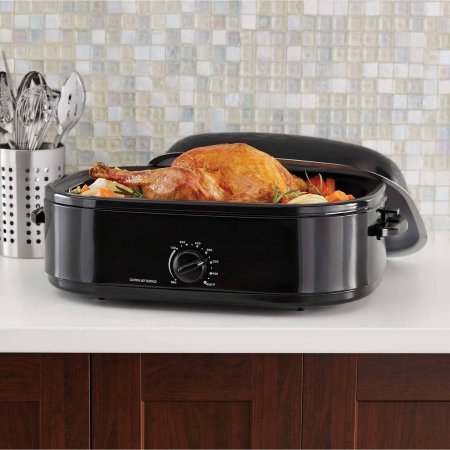 Product DescriptionMainstays 20-Pound Turkey Roaster with High-Dome Lid, 14-Quart, Black0