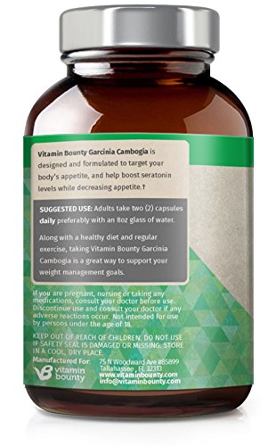 -. Feature : Introducing Vitamin Bounty Garcinia Cambogia, the industry's highest-quality blend of Garcinia Cambogia. Designed and developed by a team of specialist in health and personal care, Vitamin Bounty's Garcinia Cambogia is formulated to assist in your goals for natural weight management / Vitamin Bounty's Garcinia Cambogia contains HCA, which have been shown in numerous studies to help decrease body fat and suppress appetite*. This makes Vitamin Bounty's Garcinia Cambogia a great alternative to other supplements, because not only is a natural alternative, but it is non-stimulating / Each batch of Vitamin Bounty Garcinia Cambogia is tested for potency, and standardized to 50% HCA, which is internationally-recognized measure for efficacy. We also incorporate both Chromium and Potassium in our formulated blend, which have been shown to help stabilize your body's blood sugar levels and increase the power and effect of Garcinia Cambogia. / Made in the USA, and bottled in a NSF certified facility, Vitamin Bounty's Garcinia Cambogia is a worry-free choice. If you have any questions or concerns before or after your purchase, reach out to us and we'll get back to you with a solution you'll be extremely satisfied with. / * These statements have not been evaluated by the Food and Drug Administration. This product is not intended to diagnose, treat, cure, or prevent any disease.
