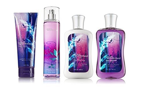 -. Feature : SECRET WONDERLAND Deluxe Gift Set Signature Collection Bath & Body Works Includes: / Signature Collection Shower Gel SECRET WONDERLAND Size:10 fl oz / 295 mL Wash your way to softer, cleaner skin with a rich, bubbly lather bursting with fragrance. Moisturizing Aloe Vera and Vitamin E combine with skin-loving Shea Butter in our most irresistible, beautifully fragranced formula! / Signature Collection Fine Fragrance Mist SECRET WONDERLAND Size:8 fl oz / 236 mL Lavishly splash or lightly sP.R.Itz your favorite fragrance, either way you'll fall in love at first mist! Our carefully crafted bottle and sophisticated pump delivers great coverage while conditioning aloe mist nourishes skin for the lightest, most refreshing way to fragrance! / Signature Collection Body Lotion SECRET WONDERLAND Size: 8 fl oz / 236 mL Our hydrating, yet non-greasy, lotion leaves skin incredibly soft, smooth and nourished after just one use! Fortified with powerful ingredients like super conditioning Shea Butter, fast absorbing Jojoba Oil, and protective Vitamin E, our top rated formula is the ultimate total body moisturizer! / Signature Collection Triple Moisture Body Cream SECRET WONDERLAND Size:8 oz / 226 g Fortified with our exclusive Triple Moisture Complex of conditioning milk proteins, hydrating rice bran oil and protective acai berry extract, this velvety rich cream provides deep, 24-hour moisture to soften even the driest skin. Our emollient, yet non-greasy, formula deeply conditions, leaving skin moisturized, fragrant and more beautiful than ever before.