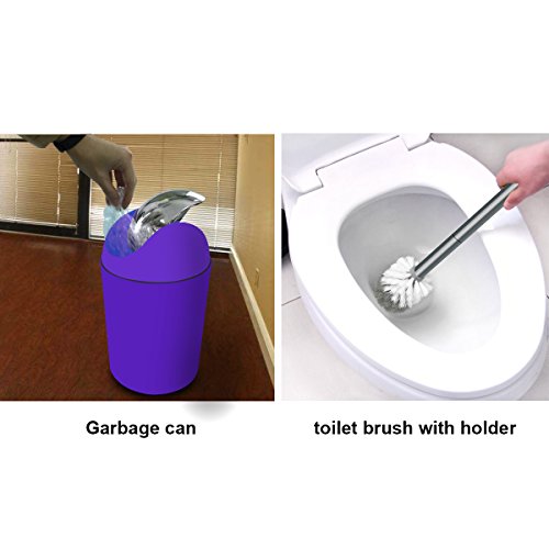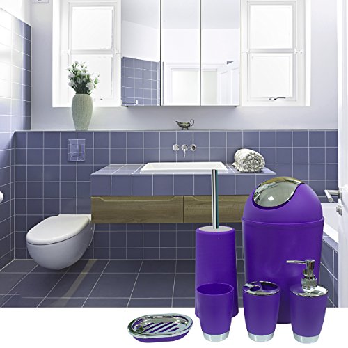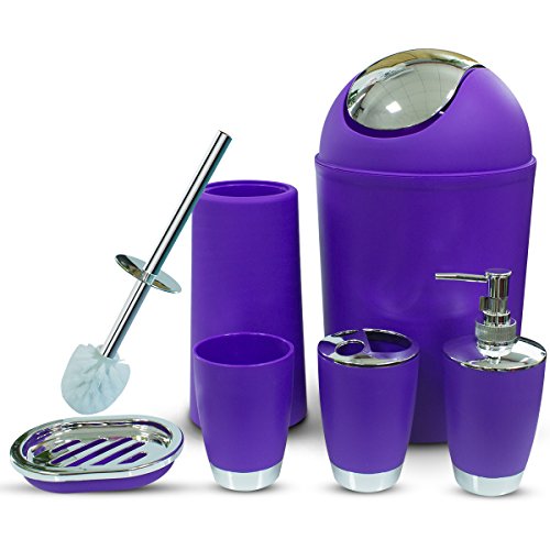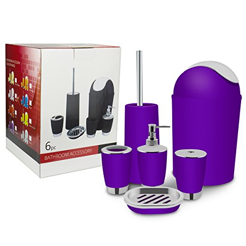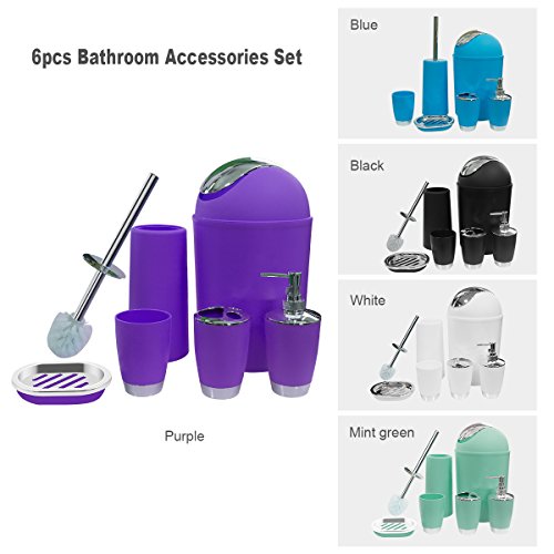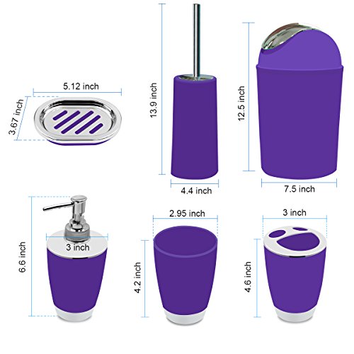 6 Pieces Bathroom Accessories Set Plastic Toothbrush Holder, Rinse Cup, Soap Dish, Hand Sanitizer Bottle, Waste Bin, Toilet Brush with Holder-Purple