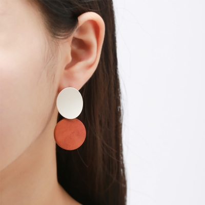 아이보리 우드 라운드 귀걸이