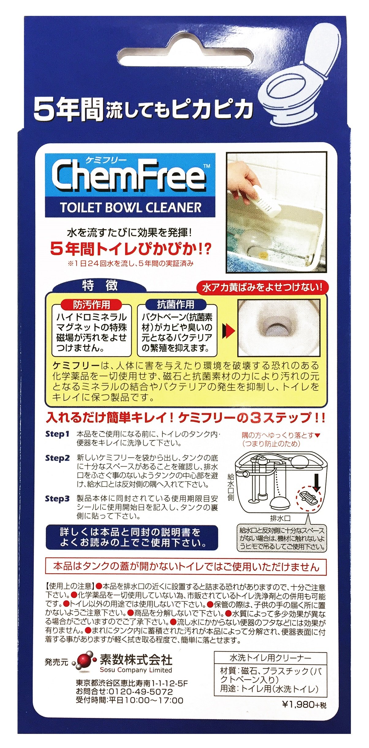 Because it is chemical free (chemical substance not used), it can be used together with other toilet detergent.