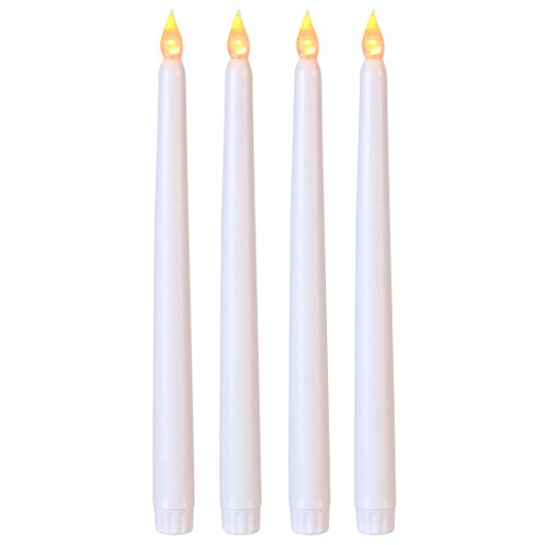 Lily's Home LED Taper Candles. For Weddings, Vigil and Menorah, 11 Inch. White. Pack of 4
