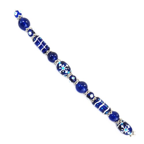 Fiona SUP-11-6 7-Inch Beads Strand, Snow Flakes and Decor Painted on Blue Glass Beads