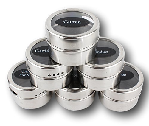 FUNCTIONALITY | Each stainless-steel storage tin measures 2" x 2.5", with a generous 3 ounce volume to hold enough contents. These magnetic spice tins feature an easy to use, rotating sift or pour lid for EASY use.
