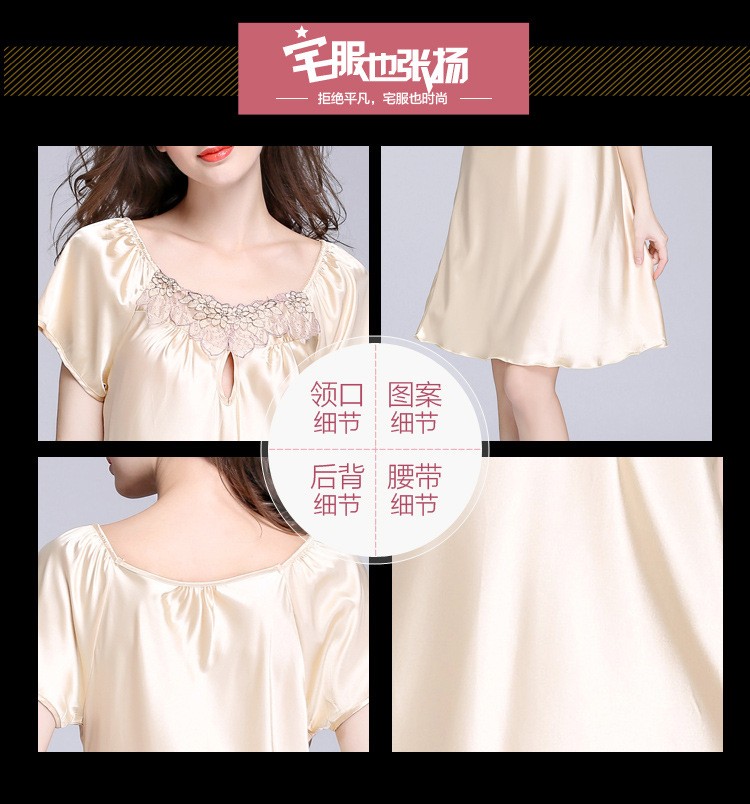 Plus Size Smooth Ice Silk Sexy Pyjamas (Champagne M / XL / 2XL / 3XL / 4XL)
