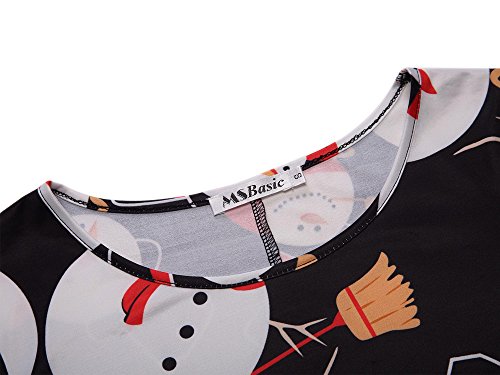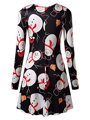 MsBasic Women's Long Sleeves Christmas Dress Xmas Gifts Print Flared A Line Midi Dress Small Snowman