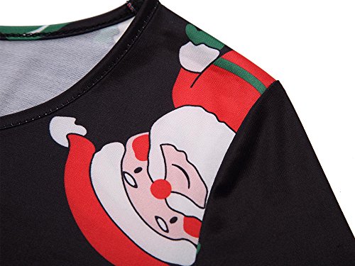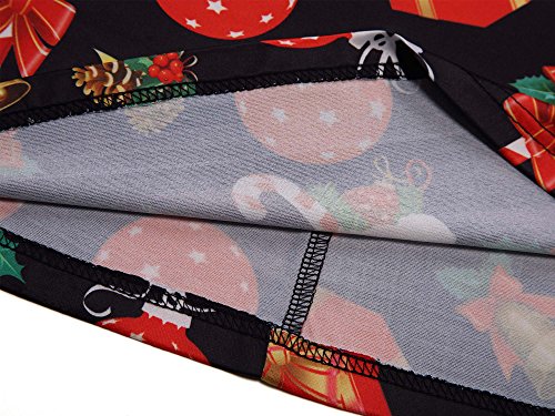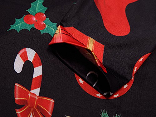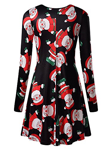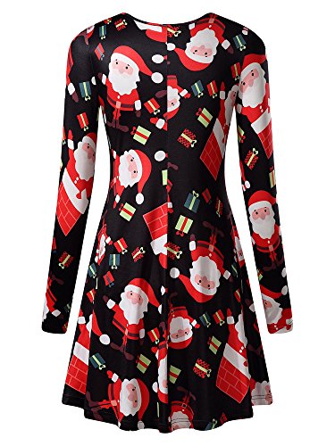 MsBasic Women's Long Sleeves Christmas Dress Xmas Gifts Print Flared A Line Midi Dress Large Black Santa Claus