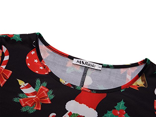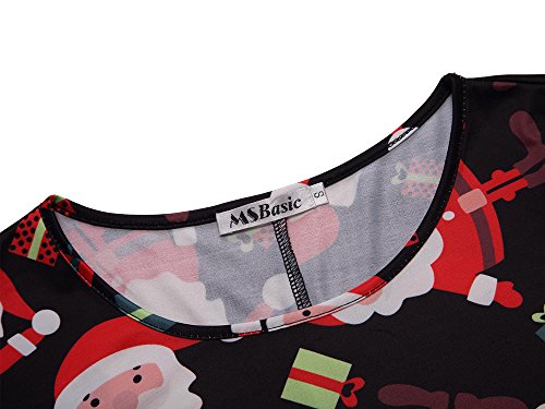 MsBasic Women's Long Sleeves Christmas Dress Xmas Gifts Print Flared A Line Midi Dress Small Black Santa Claus