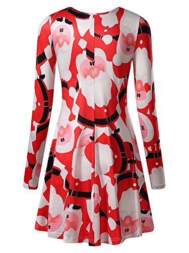 MsBasic Women's Long Sleeves Christmas Dress Xmas Gifts Print Flared A Line Midi Dress X-Large Santa Claus