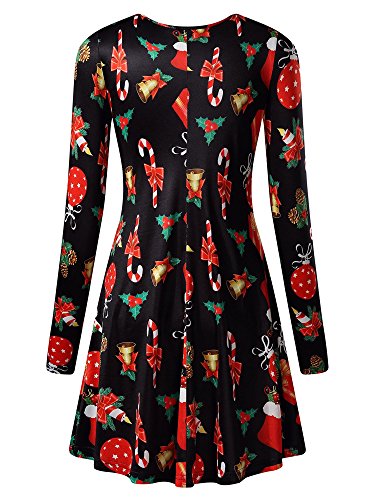 MsBasic Women's Long Sleeves Christmas Dress Xmas Gifts Print Flared A Line Midi Dress X-Large Bell and Candle