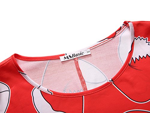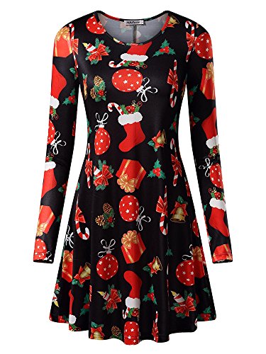 MsBasic Women's Long Sleeves Christmas Dress Xmas Gifts Print Flared A Line Midi Dress Small Christmas Hat