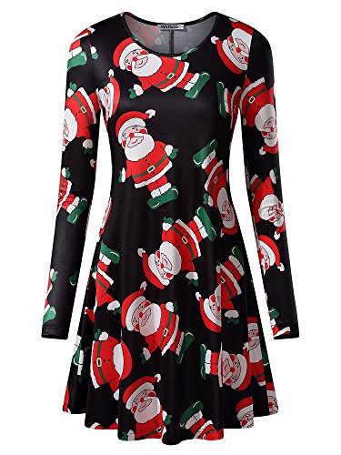 MsBasic Women's Long Sleeves Christmas Dress Xmas Gifts Print Flared A Line Midi Dress Medium Black Santa Claus